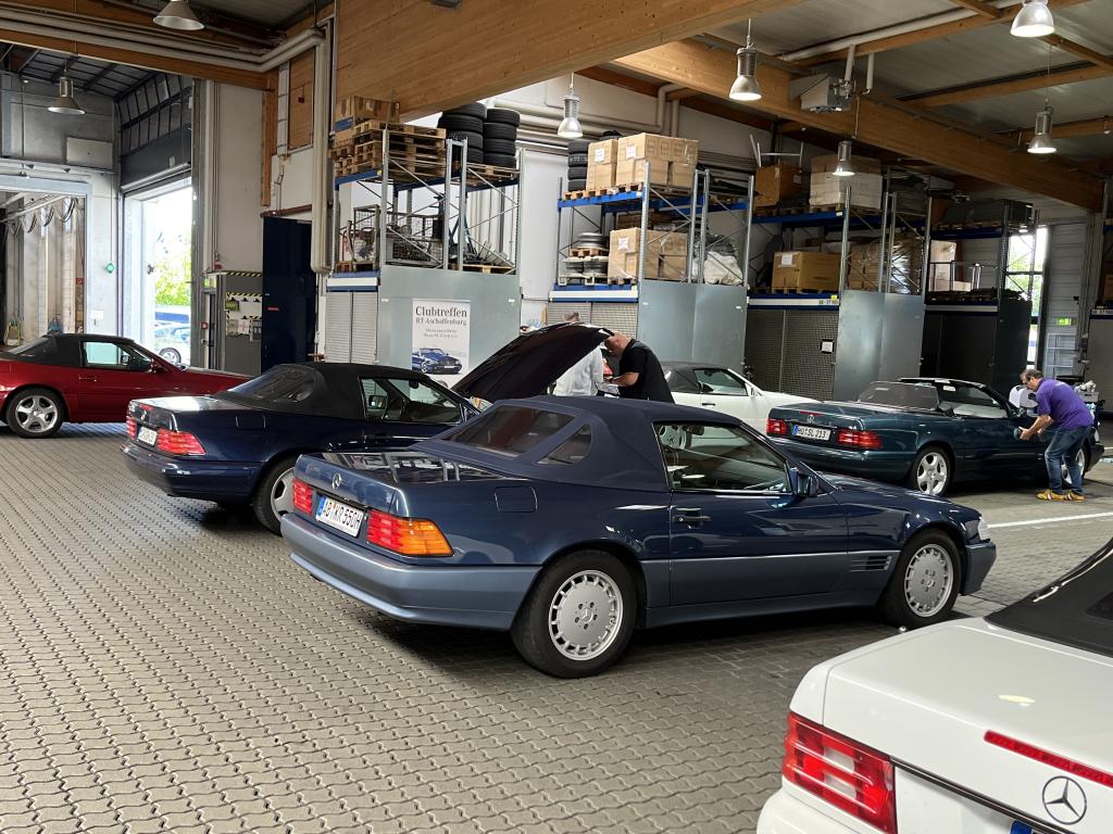 Mit insgesamt 17 Fahrzeugen war die Nachfrage groß und alle anstehendnen Arbeiten wurden zur vollsten Zufriedenheit erledigt. Unser Joachim hat den Ölwechsel an der Servolenkung und wo erforderlich an der Verdeck Hydraulik durchgeführt. Dafür unser aller Dank. Um die Wertgutachten für unsere Fahrzeuge hat sich wieder unser Partner Miles Guck gekümmert.