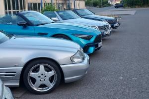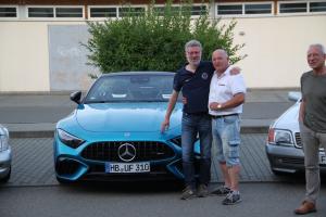 Hierdurch hatten wir Gelegenheit die Weiterentwicklung unseres geliebten R129, den R232 mit 8 Zylinder Triebwerk in Realität kennen zu lernen. Mit fünf kurzen sportlichen Parkplatzrunden und entsprechendem Sound des Motors wurden die Erwartungen jedes Roadster Liebhabers übertroffen. (siehe Video)