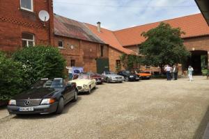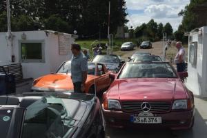 Nach dem sich anschließenden Mittagessen im Scheunencafé Ockensen mit angeschlossener Mosterei, ging die Fahrt weiter über den Ith und die Ottensteiner Hochebene, um in Polle die Weser mittels Gierseilfähre zu überqueren. Trotz Niedrigstand der Weser wurde eine Fähre voll mit unseren schönen R129 übergesetzt.