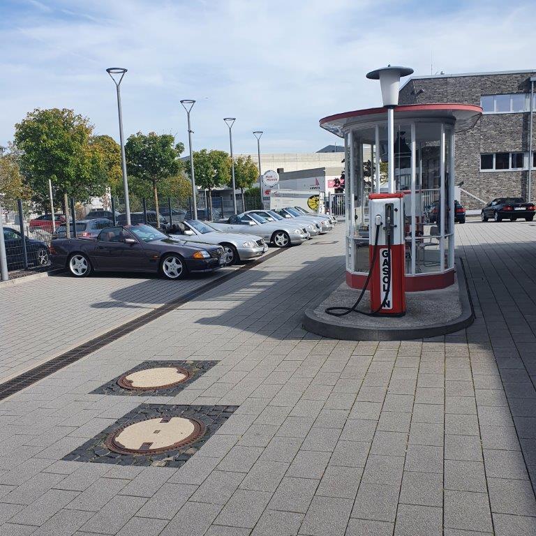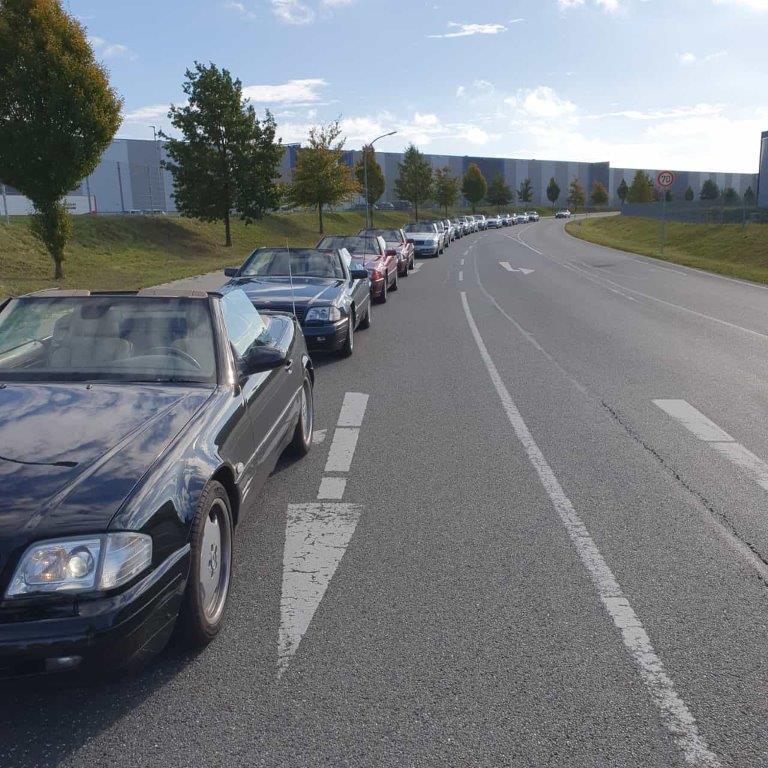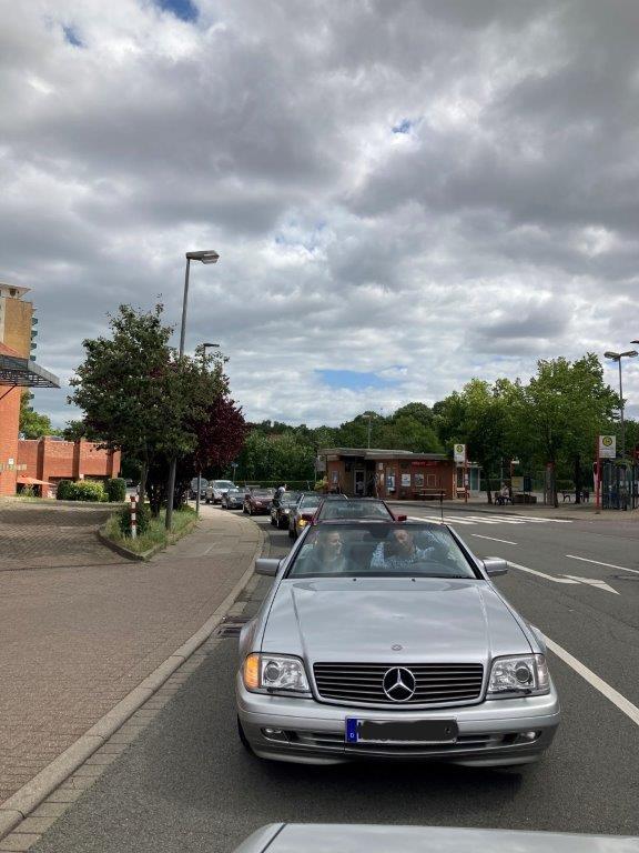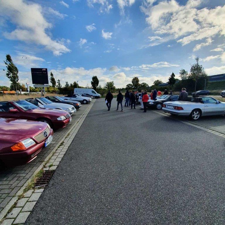 Zur Hinfahrt trafen wir uns mit unseren Clubkollegen des RT Lüneburgs am Autohof Rade. Nach einer schönen Fahrt mit einem flexiblen R129 SL Korso kamen wir gerade noch rechtzeitig, um die letzten der bereits raren Parkplätze vor Ort zu ergattern.