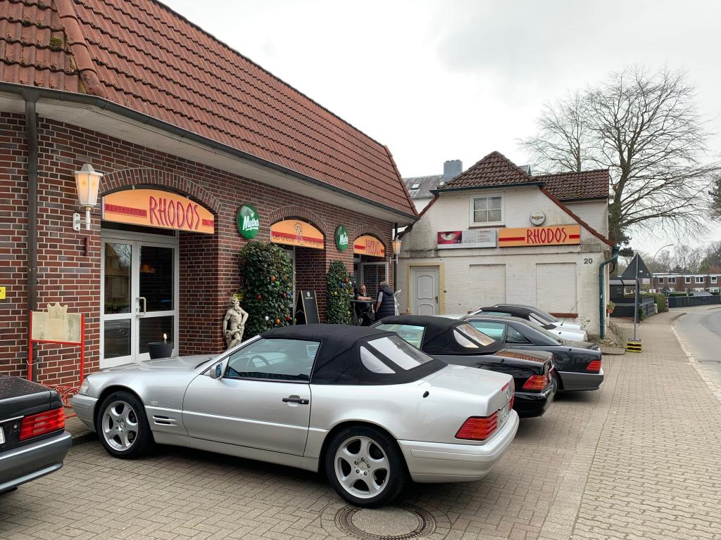 Start war bei Mercedes Behrmann in Norderstedt, natürlich Mercedes, wo passt der R129 besser hin! Über Duvenstedt und Bargteheide ging es weiter nach Hartenholm, Kaltenkirchen und über Alvesloe nach Rellingen in eine griechische Taverne - Sirtaki tanzen zum Aufwärmen