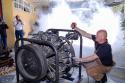 Anschließend ging es dann „oben ohne“ weiter zum Motoren Museum Lütjensee. Nach einer kurzen Begrüßung „ratterte“ ein Motor nach dem anderen unter der fachkundigen Bedienung durch Herrn Klein, den „Mechanisten“, los. Zweieinhalb Stunden dauerte die Zeitreise durch die Motorengeschichte. Begeistert mussten wir dann leider schon Abschied nehmen, da der Zeitplan für die nächsten Stationen eingehalten werden musste. Der Konvoi schlängelte sich durch Lütjensee, ein kurzes Stück über die Autobahn, durch die Holsteinische Schweiz und dann in nördlicher Richtung nach Lilienthal. Hier stand die Kaffeepause mit individueller Führung durch das private Automuseum „Bullenstall“ auf dem Programm. Auch Sternenfreunde können sich sehr wohl an alten Schätzchen – ohne Stern auf der Haube - erfreuen. Die abschließende Etappe führte uns mitten in der schönsten Rapsblüte durch das ländliche Schleswig-Holstein am Selenter See vorbei an die Ostsee nach Hohwacht. Während unsere Fahrzeuge sich auf der Parkwiese tummelten, ließen wir den Tag bei einem Abendessen mit Spargel und vielen anderen Leckereien ausklingen.