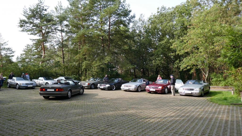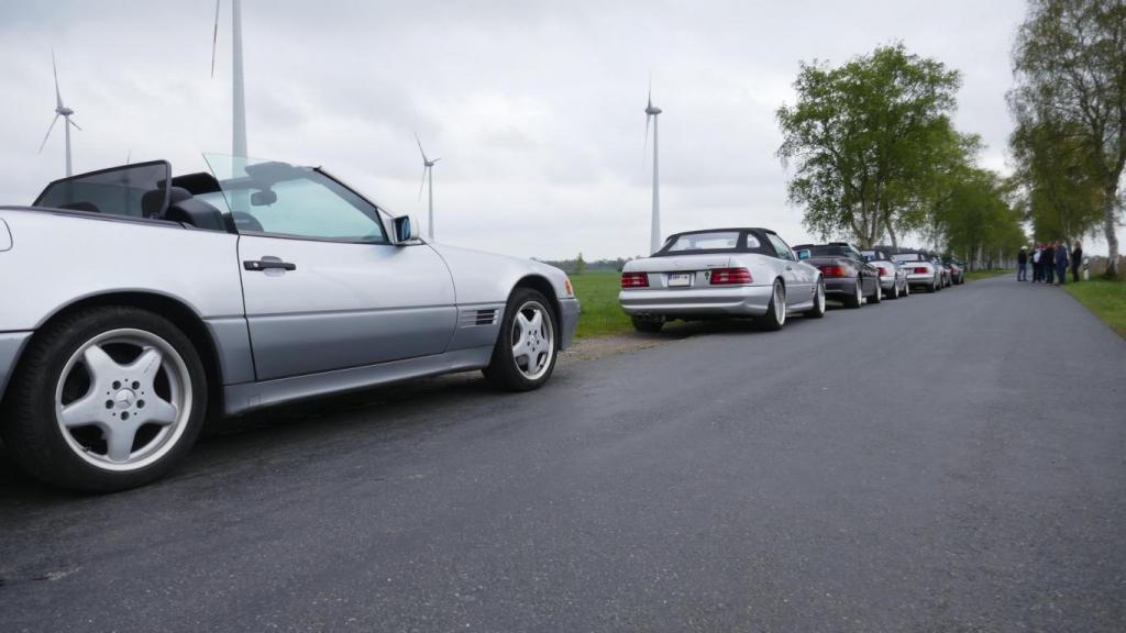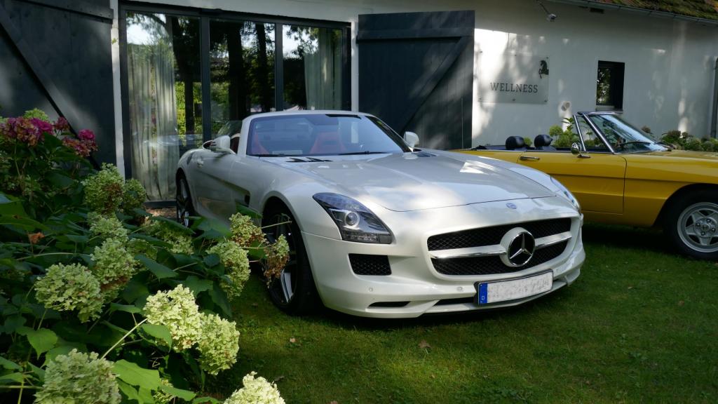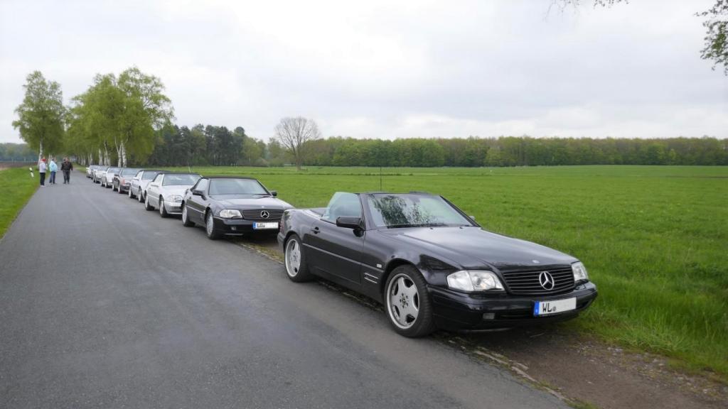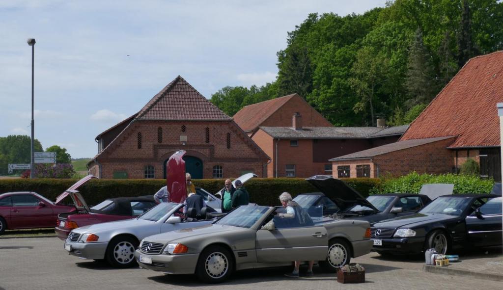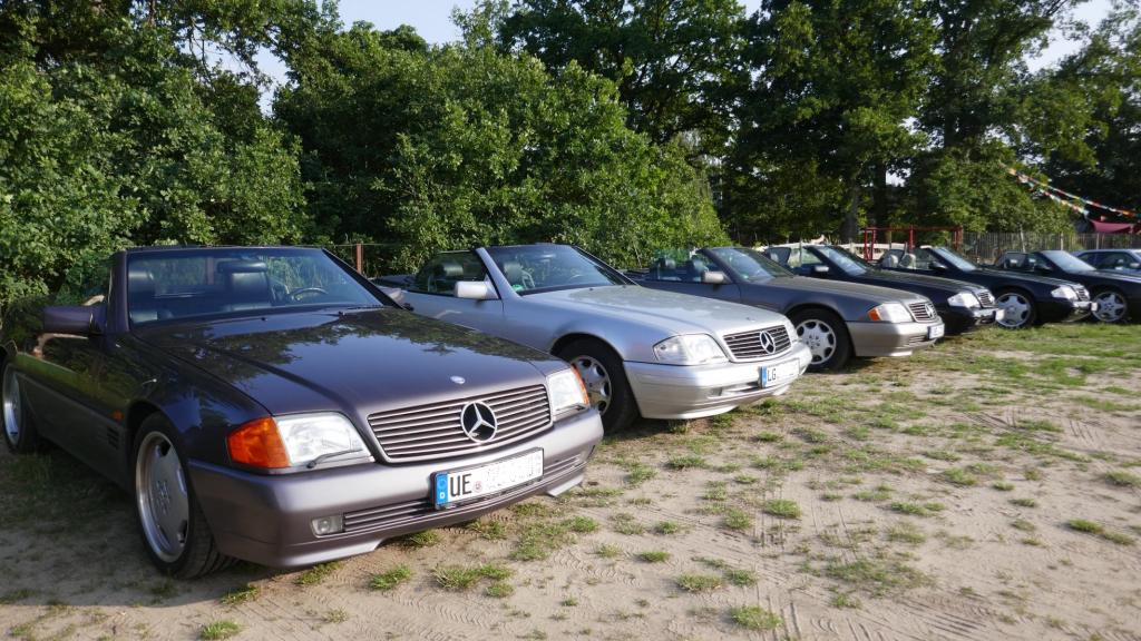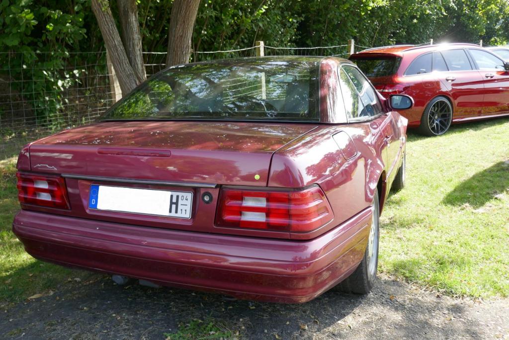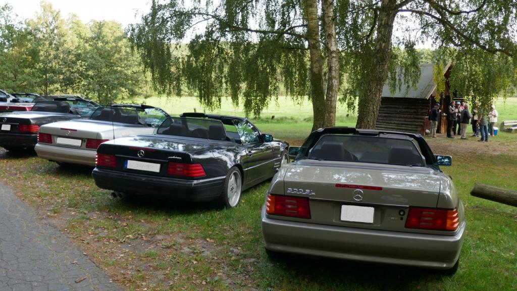 Es ging es nach einem spontanen WhatsApp Aufruf am 09.09. zu einem ehemaligen Trabergestüt südlich von Lüneburg. Zunächst trafen wir uns um 11:00 Uhr an einem Bushaltepunkt, der an diesem Tag nicht bedient wurde. Mit fünf Fahrzeugen ging es anschließend wenige Kilometer weiter, bis wir auf dem herrlich gelegenen Gutsgelände ankamen, um dann gut platziert, die ankommenden Fahrzeuge zu bestaunen. Uns viel auf das viele AMG Modelle von Mercedes, wie einige C 43, GT 43, C + E 63, SL und SLS 63, G 63 AMG sowie BMW M2, M3, M5 und auch diverse Porsche Fahrzeuge an diesem Tag aus den Garagen und einigen Händlerparkplätzen geholt worden sind, um dort mit dem überwiegend recht "jungen" Publikum und Fahrern zu "glänzen". Wer nun jedoch gedacht hätte das unsere doch schon etwas "älteren" Roadster nicht beachtet worden, der lag jedoch falsch. In kleineren Menschengruppen wurde öfters versucht die einzelne Modellpflege zu unterscheiden. Die 1989 mit der Präsentation begann und mit Modellpflegen 1989 bis 1995, 1995 bis 1998, 1998 bis 2000 und einer weiteren leichten Modellpflege im Jahr 2000 zum Erfolg des R129 führte, bis dann im Jahr 2001 das lezte Fahrzeug dieses SL von der Baureihe R230 im Oktober 2001 abgelöst wurde. Mit netten Gesprächen rund um schöne Fahrzeuge in dieser herrlichen Umgebung, endet für uns das Treffen gegen 15:00 Uhr vor Ort. Im Anschluß gab es im Kreise unserer R129 Freunde eine kleine Ausfahrt bis zu unseren Clubfreunden Peter und Ulrike, die uns zu einem Kaffee und sehr leckerem Kuchen zu sich nach Hause eingeladen hatten, bevor wir uns dann voneinander verabschiedet hatten..Leider reichte vorher das Veranstaltungsgelände für die vielen Fahrzeuge dann doch nicht aus, so kamen einige "Nachzügler" nicht mehr in den Genuss, diesen schönen Sonntag bei bestem Wetter auf dem Gutsgelände zu geniessen...Wir freuen uns daher schon auf ähnliche Veranstaltungen im kommenden Jahr!