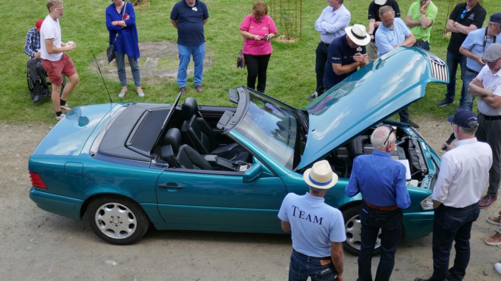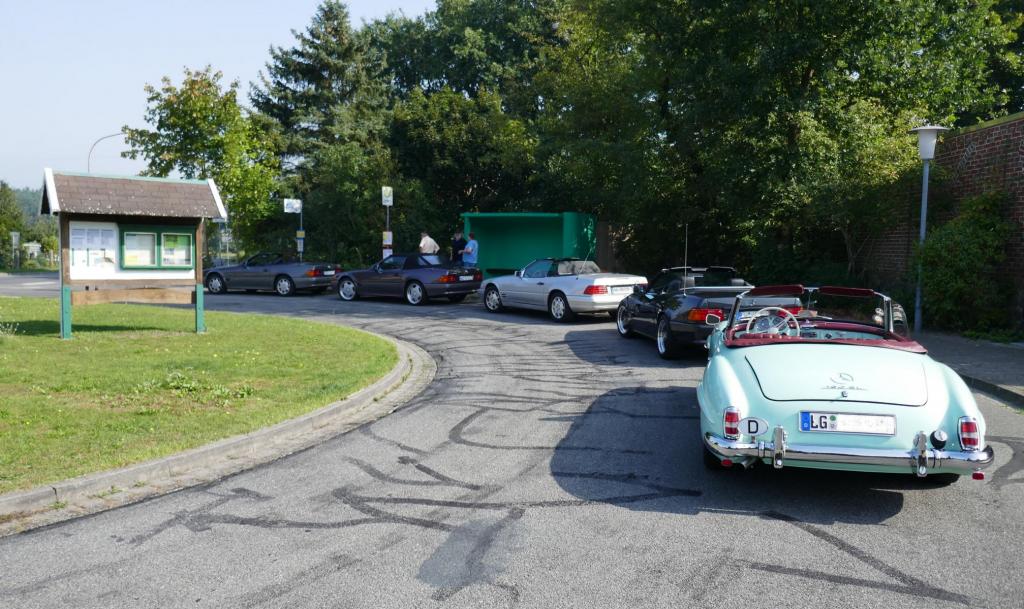 Bei herrlichem Spätsommerwetter im Heidekreis erklärte uns Michael daher, an unserem Anschauungsobjekt einem Vormopfmodell Baujahr 1994 von Bernhard, welche Handgriffe nun nötig sind, damit das Roadster-Verdeck mechanisch verriegelt werden kann. Die Beschreibung dazu finden wir natürlich auch in der jeweiligen Betriebsanleitung (Stichwort Roadster-Verdeck mech. verriegeln) bzw. auch im Internet ! Um alles sorgfältig zu erledigen, sollte hoffentlich auch eine 2. Person mit dabei sein. Wir danken insbesondere Michael für die Durchführung und diese tolle Idee, uns diese Abläufe einmal genauer erklärt zu haben. Natürlich danken wir aber auch unserem RT-Leiter Bernhard, der wieder einmal sein tolles Hofgelände und seinen SL zur Verfügung gestellt hatte !