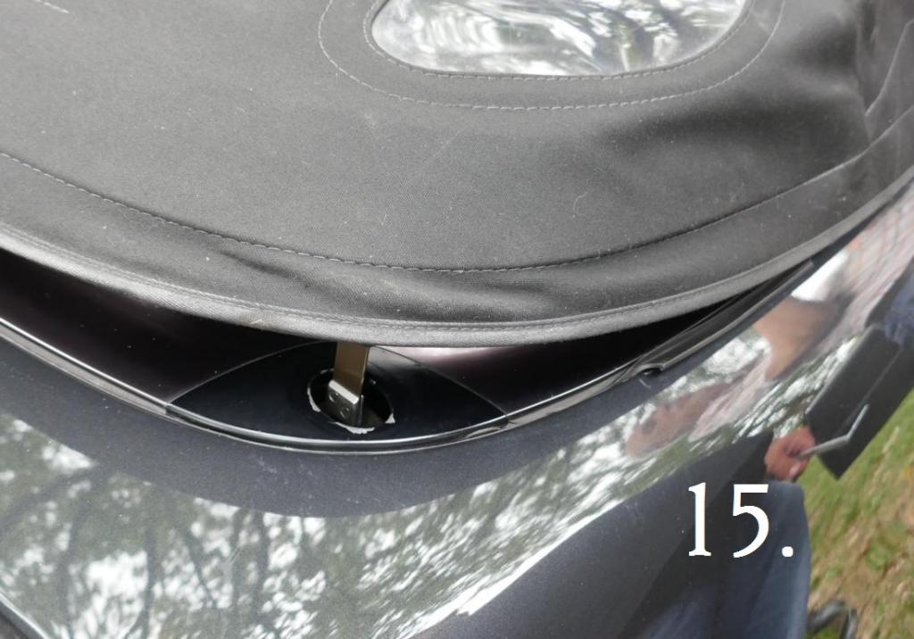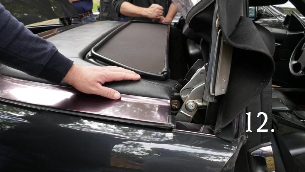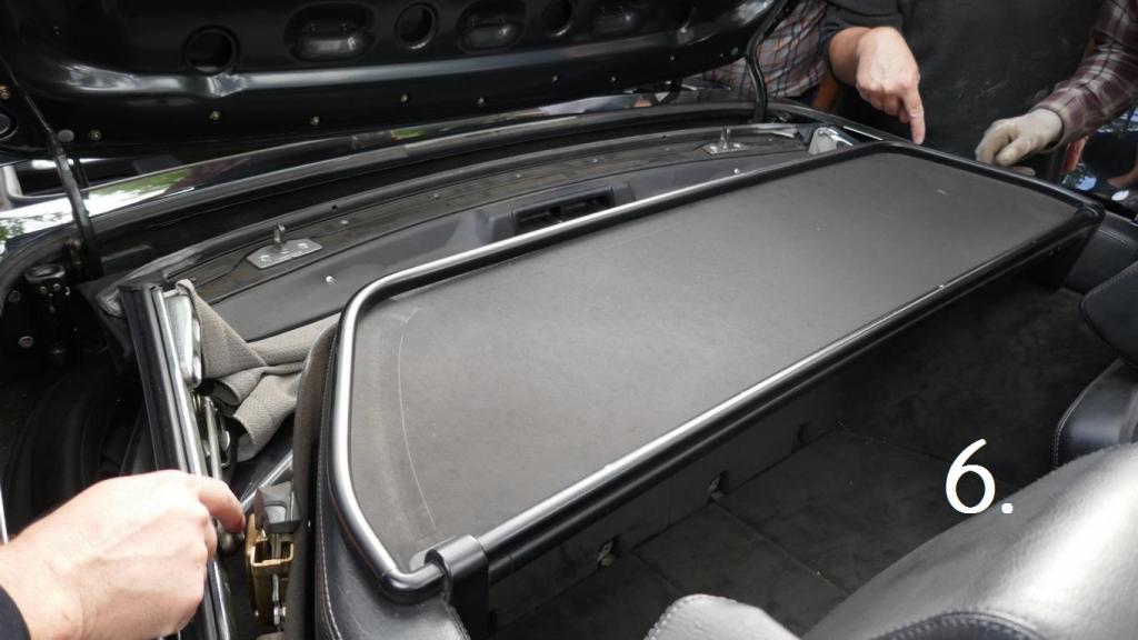 Bei herrlichem Spätsommerwetter erklärte uns Michael an unserem Anschauungsobjekt einem Vormopfmodell Baujahr 1994 welche Handgriffe nun nötig sind, damit das Roadster-Verdeck mechanisch verriegelt werden kann. Die Beschreibung dazu finden wir natürlich auch in der jeweiligen Betriebsanleitung (Stichwort Roadster-Verdeck mechanisch verriegeln) bzw. auch im Internet ! Um alles sorgfältig zu erledigen, sollte hoffentlich auch eine 2. Person mit dabei sein.