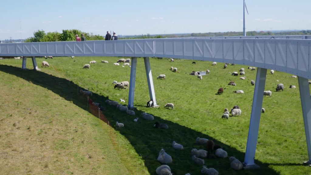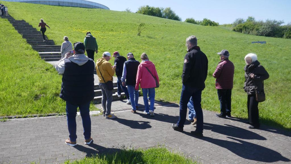 Die Organisation dieser Tour war abgeschlossen und so konnten wir bei herrlichem Frühlingswetter mit unseren Fahrzeugen gegen 11:00 Uhr starten. Die Fahrt ging von Brietlingen aus zunächst nach Artlenburg und dann entlang der Elbe, bis ins Harburger Hafengebiet! Da die Alte Harburger Elbbrücke z.Zt. gesperrt ist, nahmen wir die ausgeschilderte Umleitung gerne an, bevor wir unser erstes geplantes Zwischenziel, den Engergieberg Georgswerder, erreicht hatten. Nach einer Verschnaufpause und einer kurzen Erklärung und Beschreibung durch unseren Stellv. RT Leiter und heutigen Tour Gide vor Ort, ging es zu Fuß hinauf auf 40 Meter Höhe entlang des begrünten Energie-Hügels, bevor wir über zahlreiche Treppenstufen das Aussichts-Plateu erreichten.