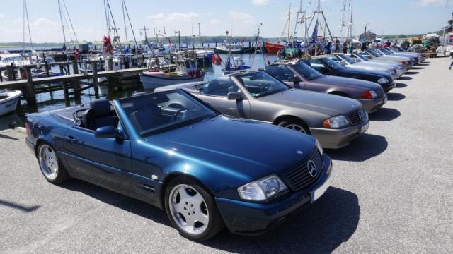 Im vergangenen Jahr hatten wir uns für unseren Saisonauftakt 2024 auf eine ganztägige Ausfahrt vereinbart. Schnell hatten wir durch einen Vorschlag von Wolfgang und Peter unser Ziel gefunden. Zwar waren es bei dieser Ausfahrt einige Kilometer mehr, als in den Jahren zuvor, jedoch hatte sich jeder Kilometer wirklich gelohnt. Pünktlich um 7:45 Uhr ging es vom vereinbarten Treffpunkt aus ein kurzes Stück über die A39 und dann weiter über die Elbe in den Sachsenwald, die B404 hinauf, bis nach Kiel und weiter Richtung Eckernförde. Dort trafen wir dann weitere SL Freunde auf dem Parkplatz direkt am Wohnmobilpark Ostsee "Grüner Jäger" der gerade neu gestaltet wird. Eine zweite Pause stand an. Bei Kaffee und Kuchen waren sich bereits alle einig, dass wir schon bis dorthin eine ganz besondere Ausfahrt geniessen konnten. Frisch gestärkt ging es dann weiter entlang herrlich blühender Landschaften und Cabrio geeigneten Alleen, bis wir gegen 13:00 Uhr unser eigentliches Ziel, den Hafen von Maasholm, erreichten. Eigens für uns hatte Hafenimbissbetreiber Udo die Schranke für unsere Fahrzeuge geöffnet und so durften wir mit unseren glänzenden Fahrzeugen direkt am Fischerreihafen parken. Ein toller Anblick! Wie schon zuvor erklärte uns "Tour Guide" Wolfgang, in einer besonderen anschaulichen Art, die Umgebung, bis wir dann die Köstlichkeiten des Meeres zu uns nehmen konnten. Die Zeit verging auch dort rasant, bis sich die ersten aus der Gruppe verabschiedeten. Ein anderer Teil blieb noch vor Ort und erkundete die Umgebung, bis auch dieser die Heimreise antrat. Der Wettergott war auch an diesem Tag wieder auf unserer Seite und so bleibt auch diese tolle Ausfahrt sicherlich noch eine ganze Weile allen Teilnehmern und Teilnehmerinnen in bester Erinnerung! Wie immer sagen wir vielen Dank an das gesamte Orgateam und an diejenigen die wieder Kuchen gebacken und Kaffee gekocht hatten. Wir freuen uns heute schon auf die kommenden Touren....