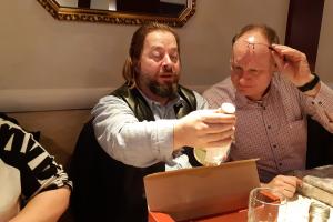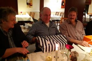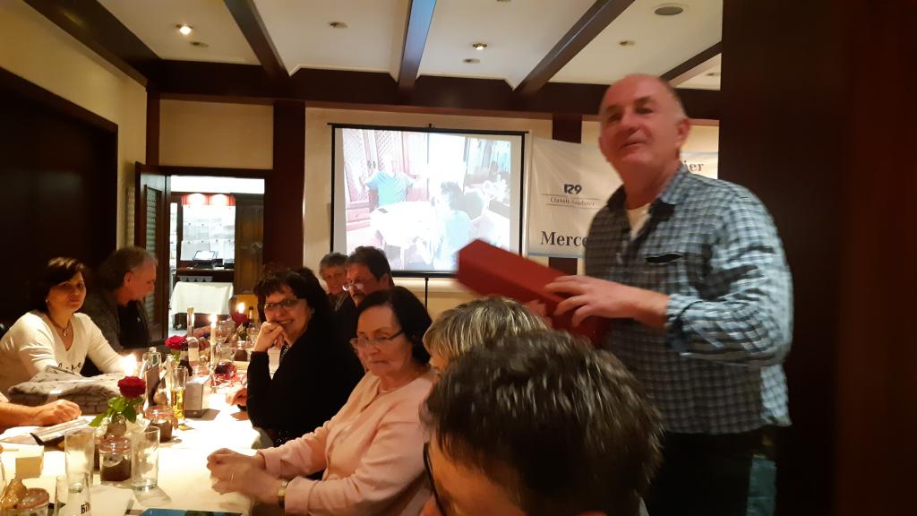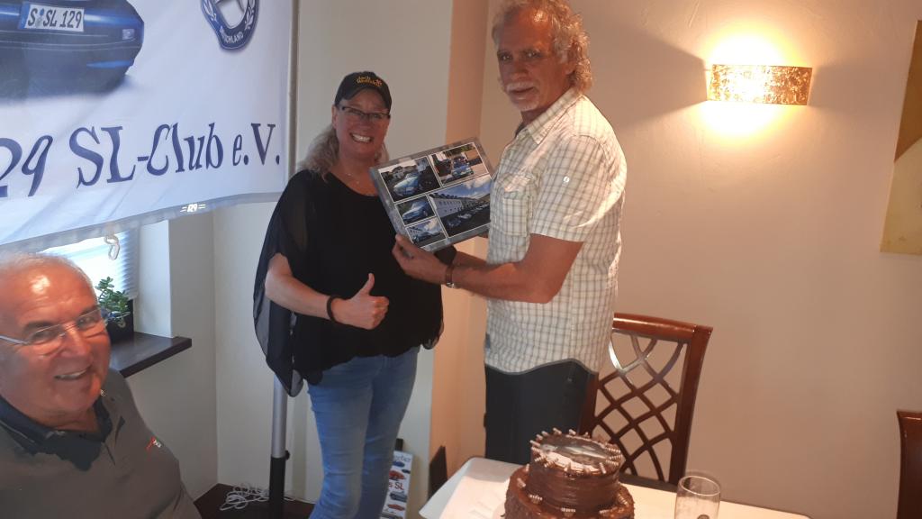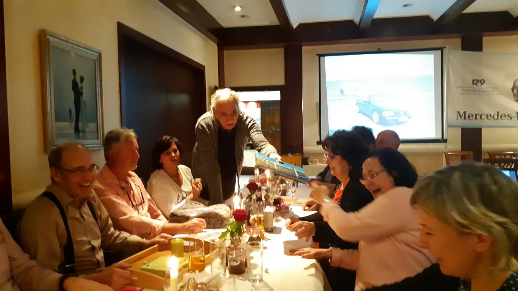 verzehrt wurde. Als weiteres Geschenk überreicht Simone noch eine Bilder Collage von Ottmar mit seinem R129.