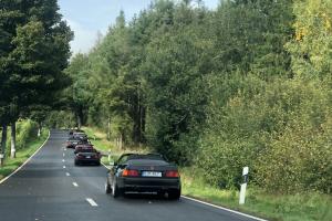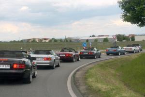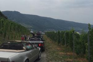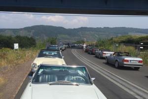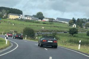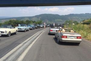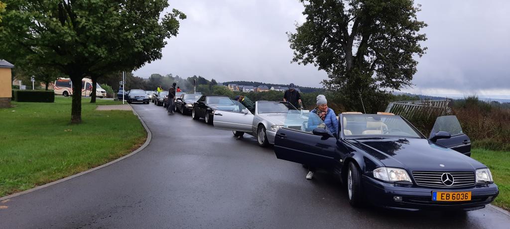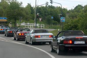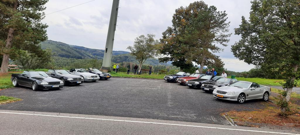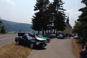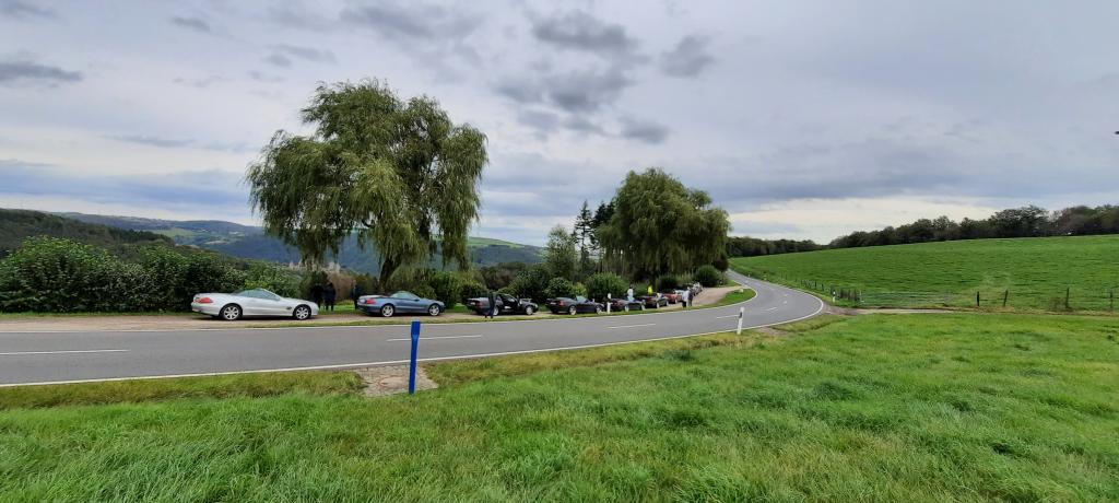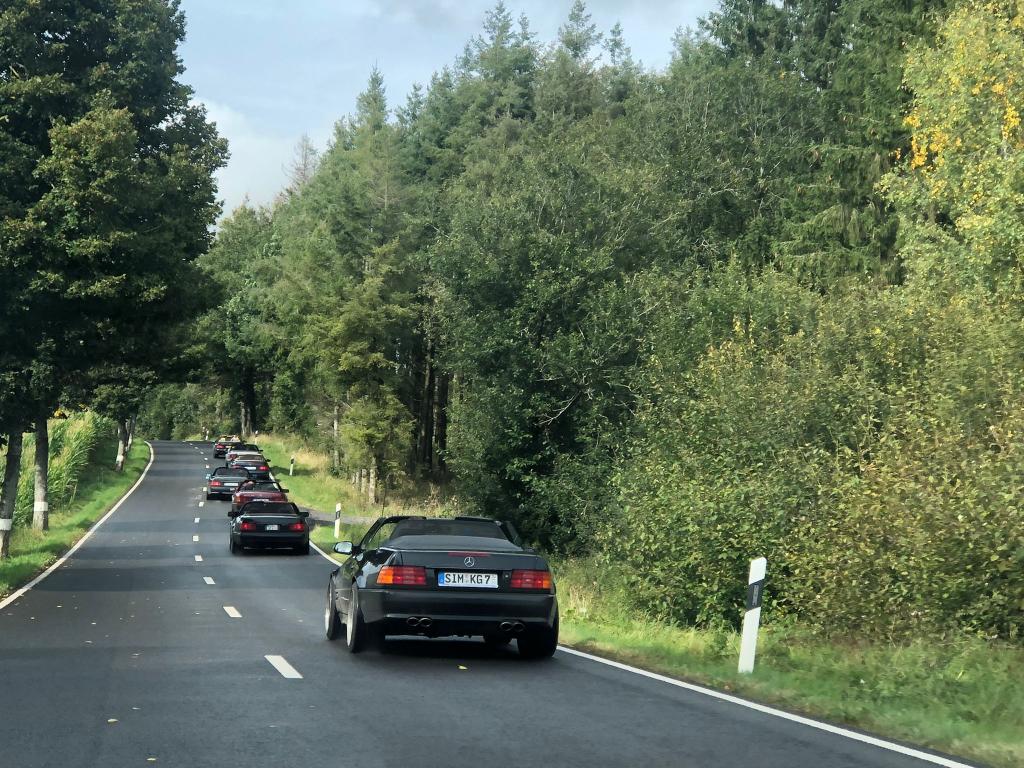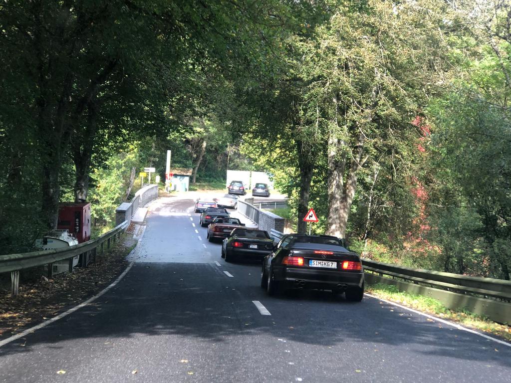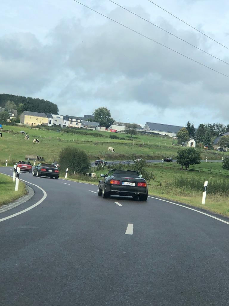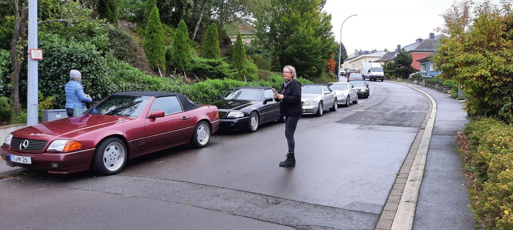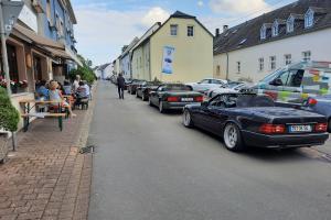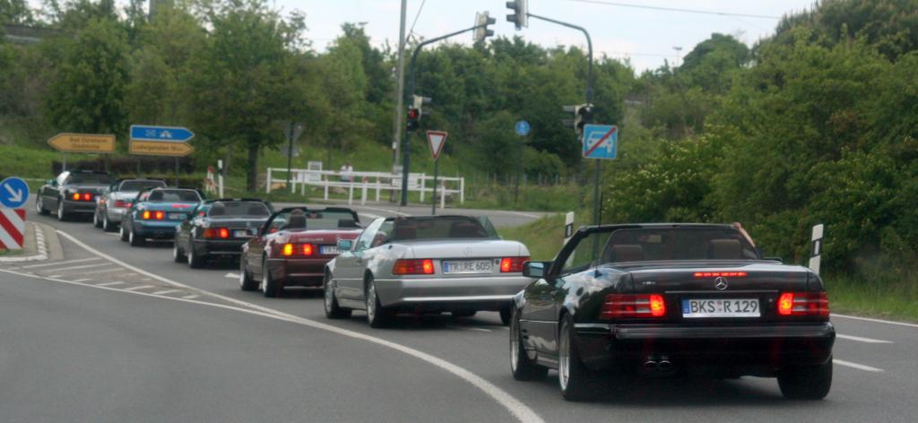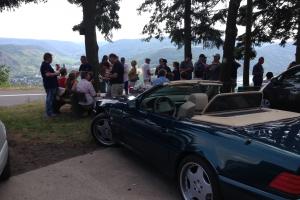 Dort warteten schon 7 weitere Fahrzeuge des RT Trier, und um kurz nach 9:00 Uhr gings dann mit insgesamt 21 !!! SL´s über einige Panoramastrecken zu unserem Frühstückslokal der " Waldschenke mit Herz " hoch über den Dächern von Bernkastel-Kues. RT Leiterin Simone versorgte uns immer wieder über Funk, mit interessanten Informationen rund um die Mosel, und beim Anblick so vieler R129 war das selige Grinsen in vielen Gesichtern der Teilnehmer nicht mehr zu übersehen ;-)