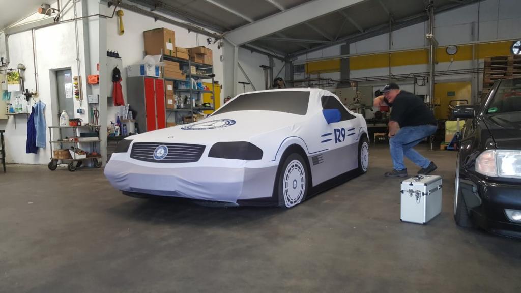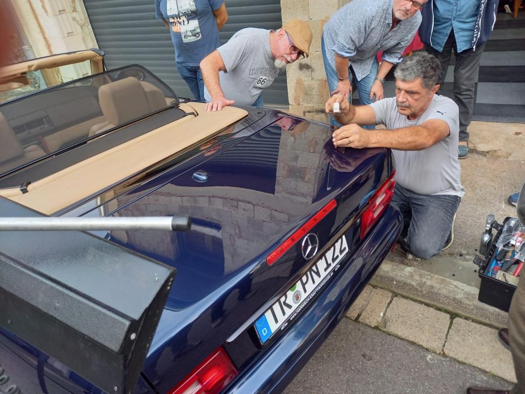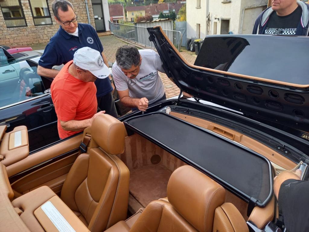 Gut gestärkt ging es dann an verschiedene Fahrzeuge. Es wurde allerlei gefachsimpelt und das ein oder andere Problemchen gelöst. Auch das neue Mäntelchen aus dem Clubshop zur Überwinterung unserer R129 wurde schon mal anprobiert ;-)