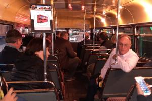 nämlich eine romantische Abendrundfahrt durch Luxemburg-Stadt in einem original britischen Doppeldeckerbus !