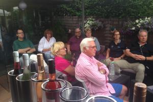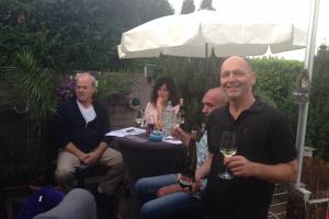 Nach dem dortigen Abendessen luden RT Leiterin Simone und ihr Gatte Oliver um 20 Uhr zur Weinprobe auf ihrer Terrasse bei sich zu Hause ein. Da ihr Haus nur 5 Gehminuten vom Hotel entfernt ist, konnte natürlich das ein oder andere Glässchen leckeren Moselweins genossen werden ;-) Zwischen 18 und 19 Uhr schüttete es wie aus Eimern, aber die Wetterfee meinte es gut mit uns und drehte den Hahn noch gerade früh genug zu, sodass bis um 20 Uhr fast alles getrocknet war.