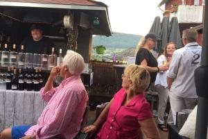 An einem schattigen Plätzchen mit grandioser Aussicht ins Moseltal gabs allerlei köstliche Häppchen, abgerundet mit einem kühlen Glas Moselsecco. Die leichte Brise dort machte die Hitze nun auch wieder erträglich.