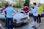 Petrus muß ein R 129 SL-Liebhaber sein. Bei Kaiserwetter eröffnet der RT Ulm die Saison mit einem Techniktag. Alle kommen oben ohne. Philipps haben in ihr Autocenter in Gundelfingen geladen und dank Einladung an befreundete Clubs kommen ca. 70 Fahrzeuge und 120 Personen. Der Hof ist voll. Dank perfekter Organisation und den vielen Helferlein unserer Mitglieder läuft die Abwicklung wie geschmiert. Weißwürste, Wiener, Sektempfang, Kaffee und Kuchen inklusive. Kleinigkeiten technischer Art werden in der Werkstatt sofort behoben, die Größeren werden wieder mit heimgenommen. Danke an Christiane und Alex für ihre Gastfreundschaft – und den vielen ungenannten Helfern. Der Reinerlös aus Spenden und Verkauf von Kaffee und Kuchen beträgt 1.317,84 und wurde - wie immer - an das Kinderheim in Gundelfingen gespendet. Allen ein herzliches Dankeschön.