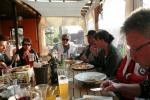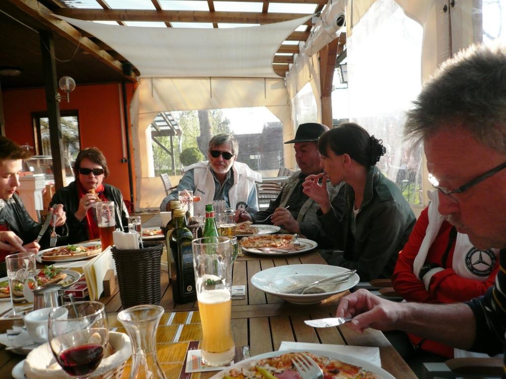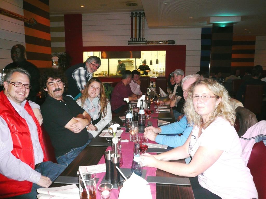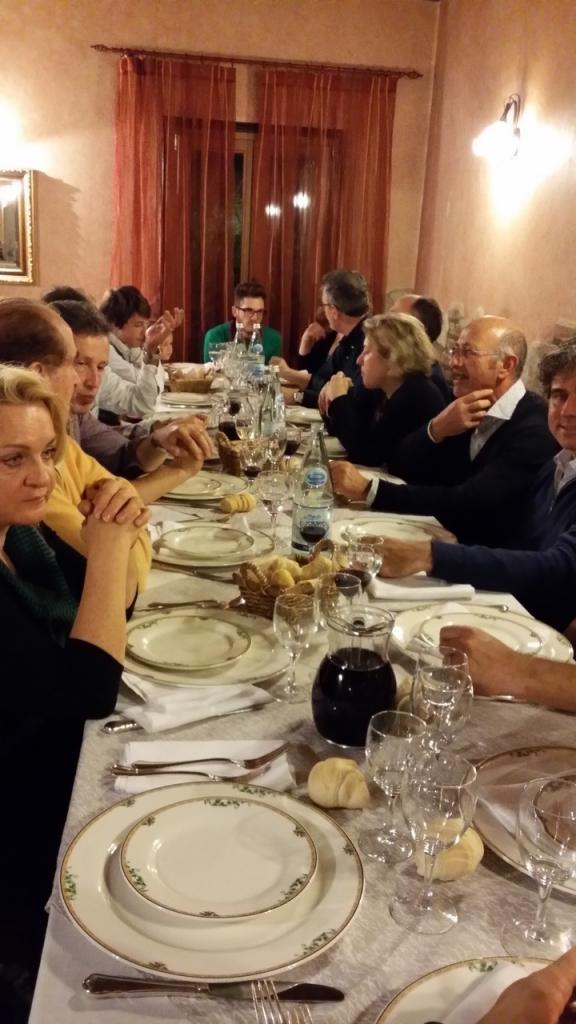 Nachdem nach und nach alle 14 Italiener eingetrudelt waren, begann das typische italienische Abendessen mit Antipasti, diversen Pastas, Stockfisch in Soße (eine Spezialität des Restaurants), Vino, Aqua, Dolce und Cafe.
