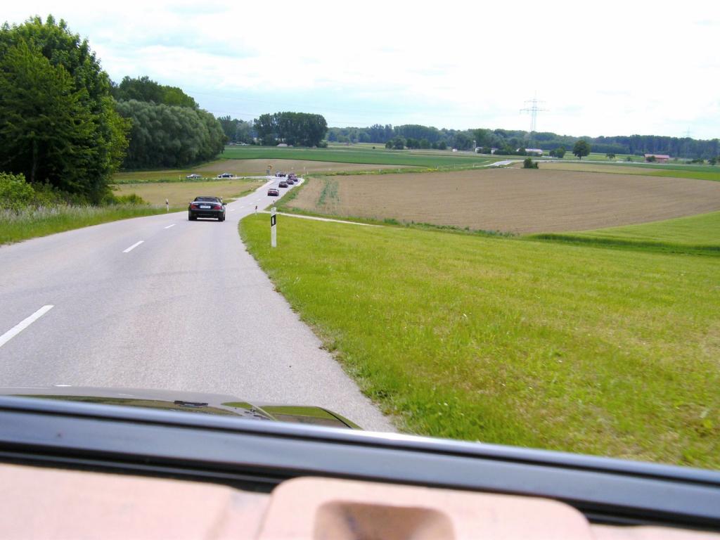 Wir fuhren über Thannhausen, weiter auf kleinen Straßen, wie die bereits präparierte Bergrennstrecke bei Mickhausen. Leider waren ein paar Schleicher vor uns und bremsten unsere Schummis ein.