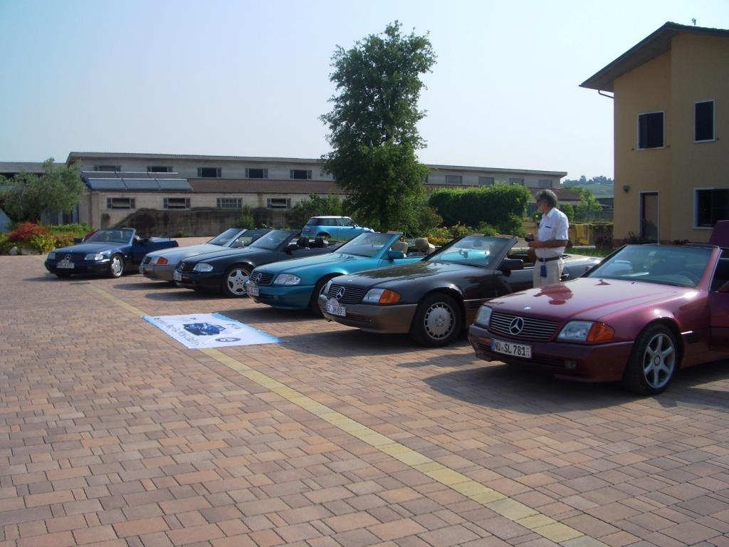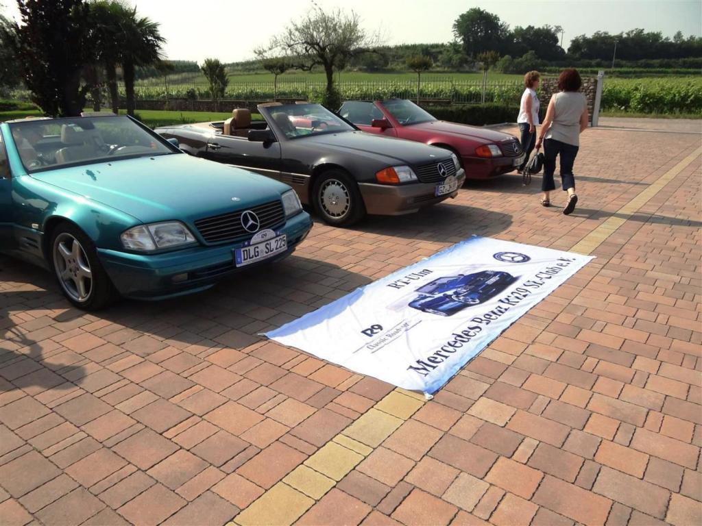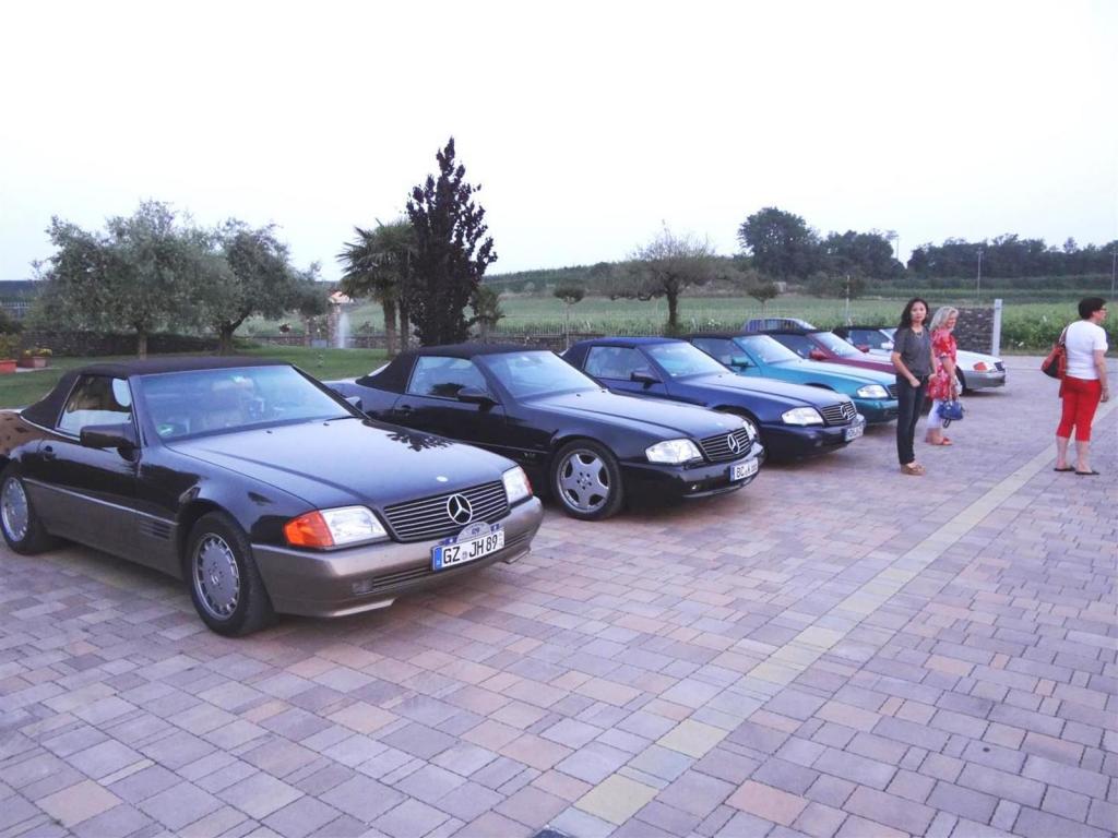 Bei Mezzocorona fuhren wir auf die A22 zurück und verließen die Autobahn erst wieder bei Affi/Lago di Garda Sud. Über die SS450, ein kurzes Stück auf der SS11 und einer kleinen Landstraße erreichten wir dann endlich um 21:00 Uhr unser Ziel das Agriturismo Cá del Gal in Valeggio sul Mincio, wo uns die italienischen SL-Freunde bereits sehnsüchtig erwarteten. Sie waren zu sechst und mit zwei R129 und einem R107 aus der Gegend um Padua gekommen.
