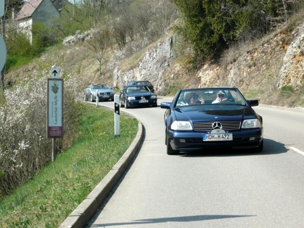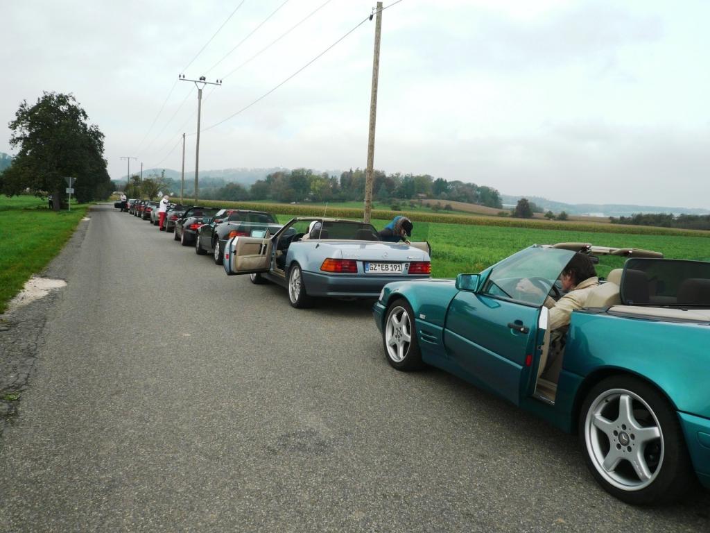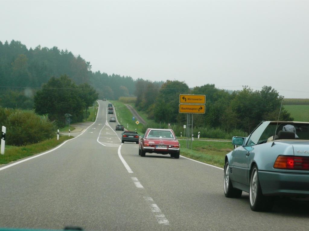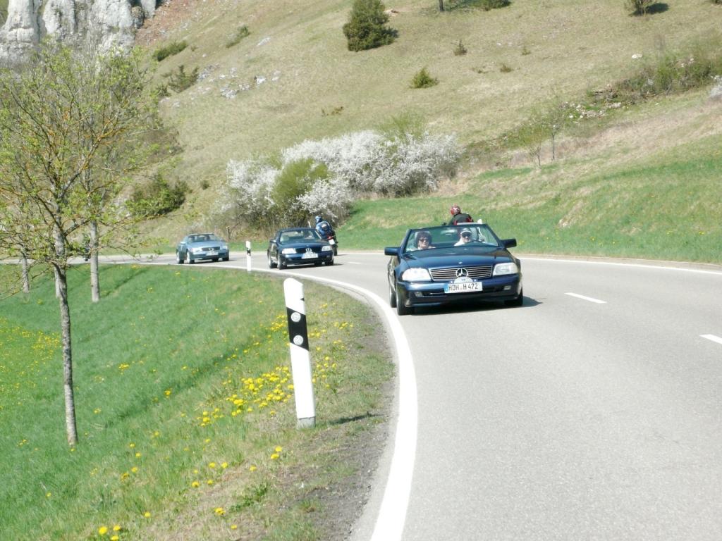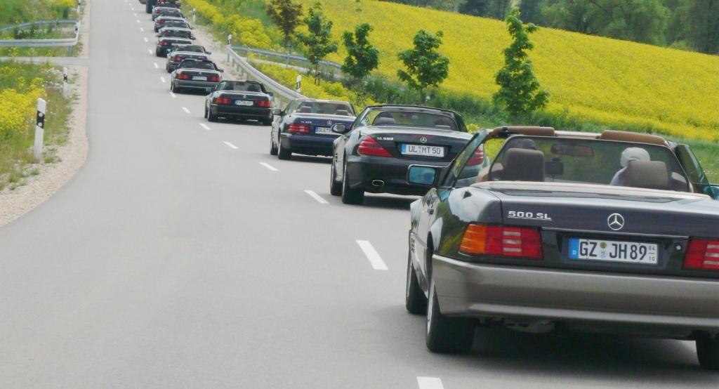 Alles klar, alle Fahrzeuge noch ohne jegliche Probleme dabei (war ja auch nicht anders zu erwarten). Immer noch schönes Wetter, offene Verdecke, gute schnelle Straßen und unsere Mercedes R129. Herz, was willst Du mehr?