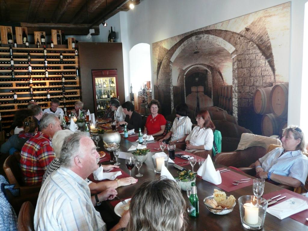 Weiter ging es über Klingenmünster bis nach Flemlingen, wo wir im Stammlokal des RT Landau, dem Weingut Marienhof, sehr gut bewirtet wurden.Angekommen in Neustadt/Weinstraße wurde ins Hotel eingecheckt und um 19.00 ging es dann per Taxi-Transfer zur Weinkerwe nach St. Martin. Um Mitternacht ging es dann mit dem letzten Transfer zurück ins Hotel.