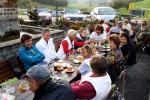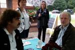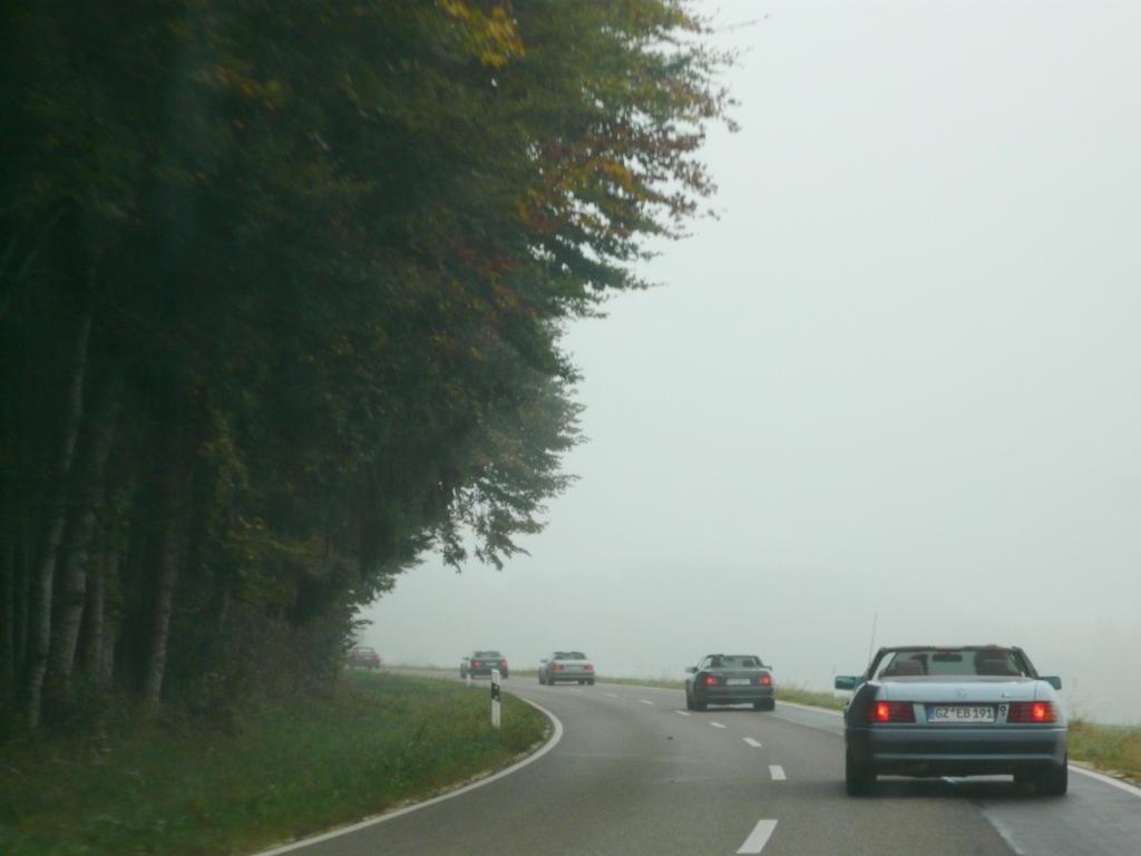 Nach der traditionellen Abfahrzeremonie mit Kuchen und Sekt (auch alkoholfrei für die Fahrer) ging es, (einige machten das Dach trotz des immer noch herrschenden Nebels inzwischen auf) querfeldein Richtung Südwesten. Über Krumbach, Illertissen, Schwendi, vorbei an Biberach und Bad Saulgau, über Ostrach und Denkingen fuhren wir nach Überlingen. Eine Streckensperrung auf der geplanten Route führte zu einem größeren Umweg, da wir ja Michael unterwegs einfangen mussten, der am Ende der Straßensperrung auf uns wartete.