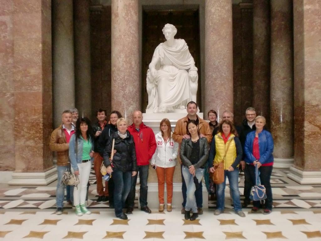 Leider hat es mittlerweile angefangen zu regnen, aber der guten Laune tut es nur wenig. Wir erklimmen die Walhalla, stellen mit Schrecken fest, dass es keinen Gruppenrabatt gibt und informieren uns in der „Hall of Fame“ über Rang und Namen der Geschichte.