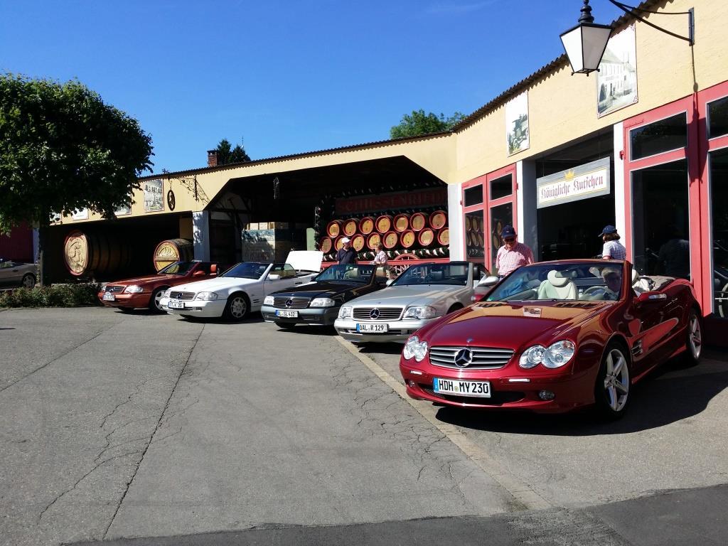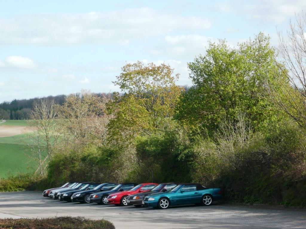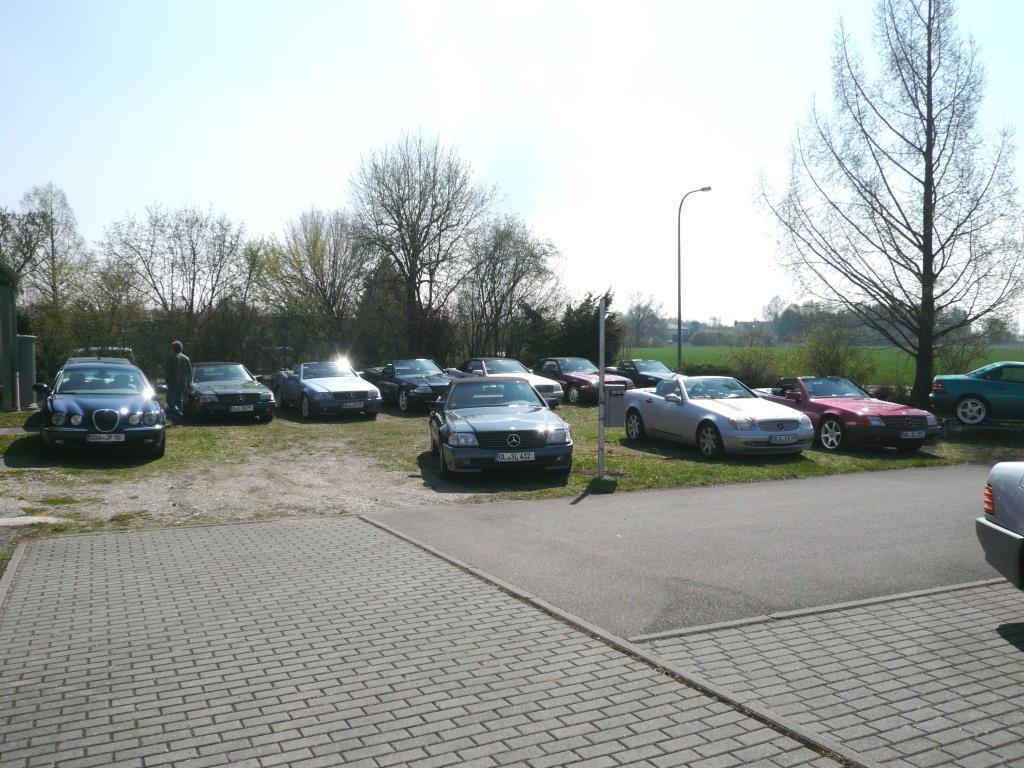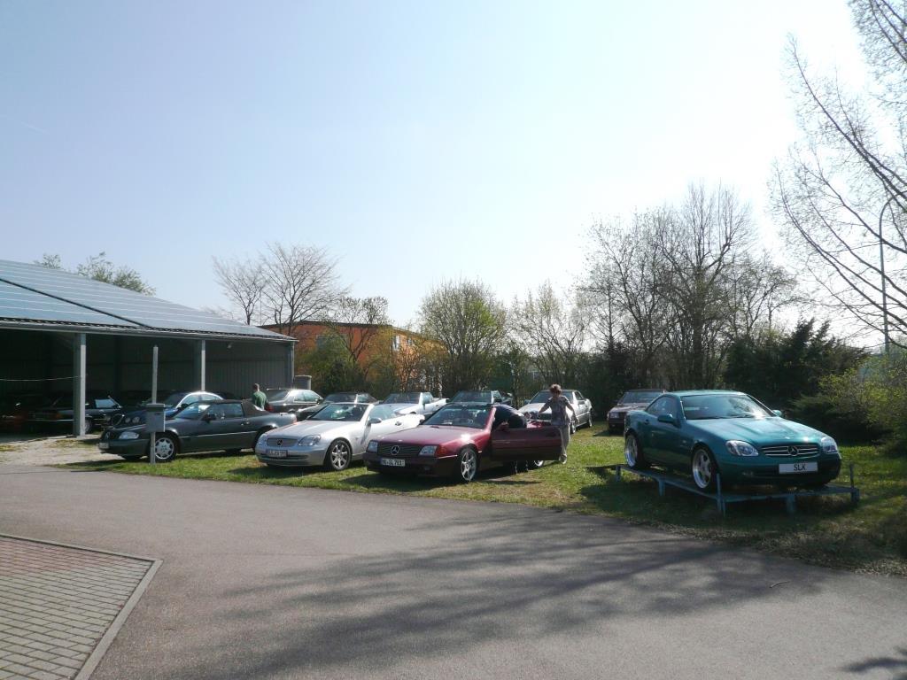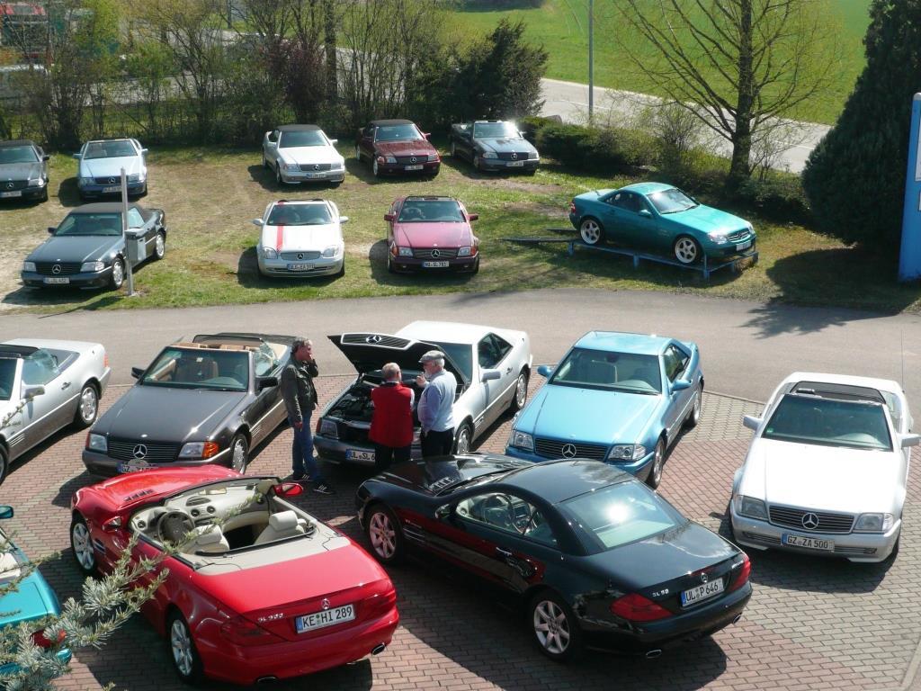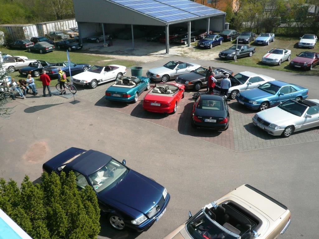 Bei warmem Wetter, mit schönstem Sonnenschein, trafen dann über den Tag verteilt 61 Personen mit 35 SL in allen Motor, Farb- und Innenausstattungs-Varianten, 1 SLK und 2 Porsche ein.