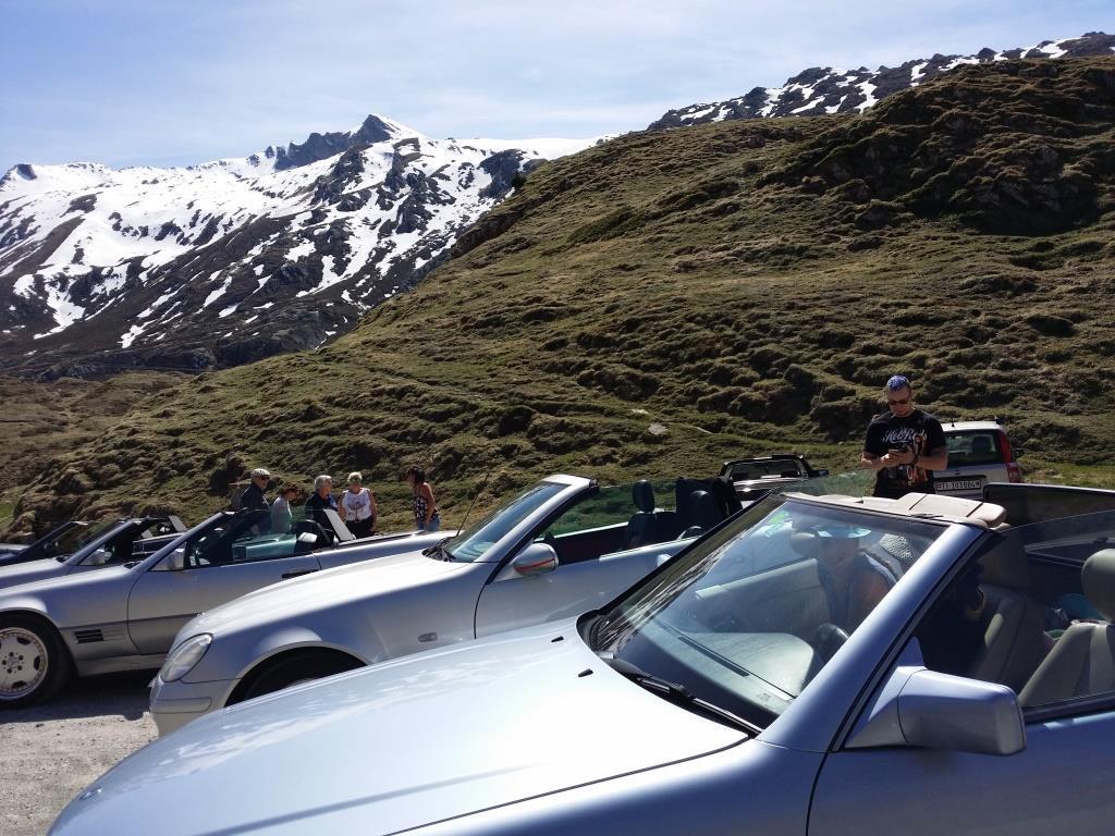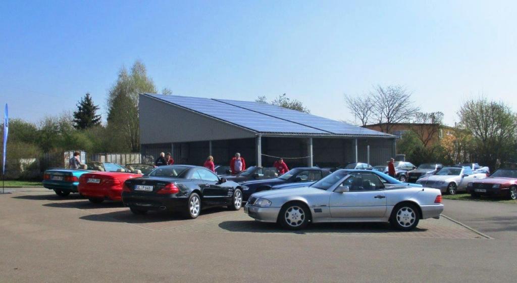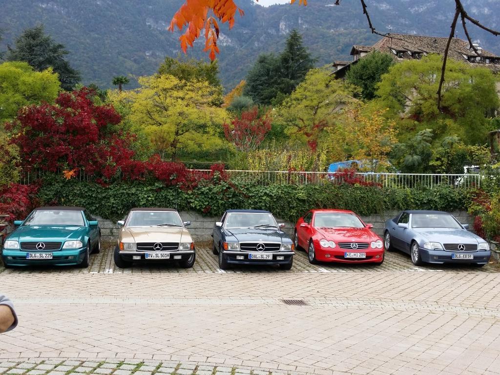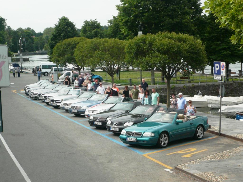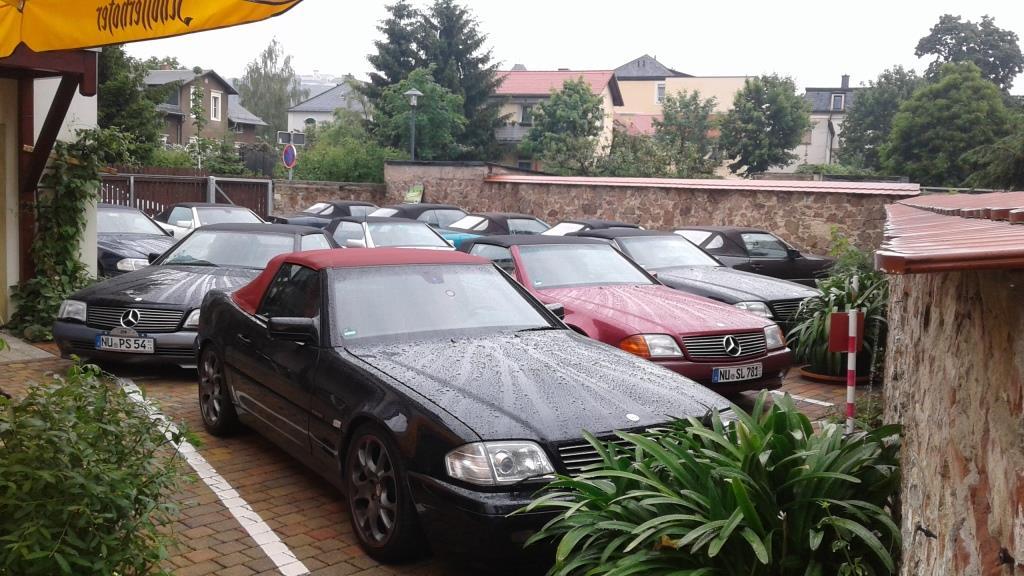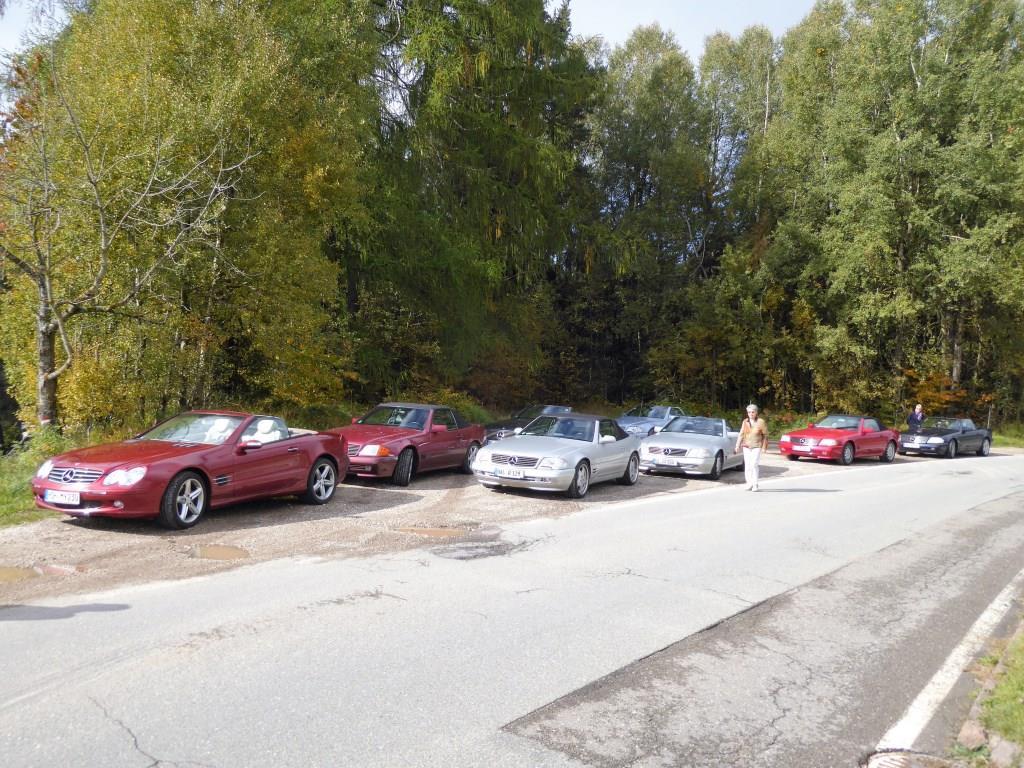 Bei warmem Wetter, mit schönstem Sonnenschein, trafen dann über den Tag verteilt 61 Personen mit 35 SL in allen Motor, Farb- und Innenausstattungs-Varianten, 1 SLK und 2 Porsche ein.