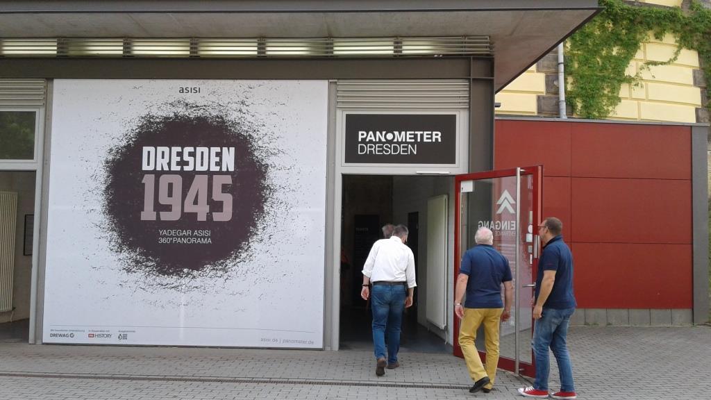 Nachdem wir wieder fürstlich gefrühstückt hatten, begann am Pfingstmontag der letzte Teil unseres Aufenthaltes in Dresden. Ziel war das Panometer, (http://www.asisi.de/de/ausstellungsorte/dresden-dresden1945/service.html), in dem wir durch die Ausstellung „Dresden 1945“ geführt wurden. Sehr beeindruckend war nicht zuletzt das 360° Panoramabild von der Zerstörung Dresdens.