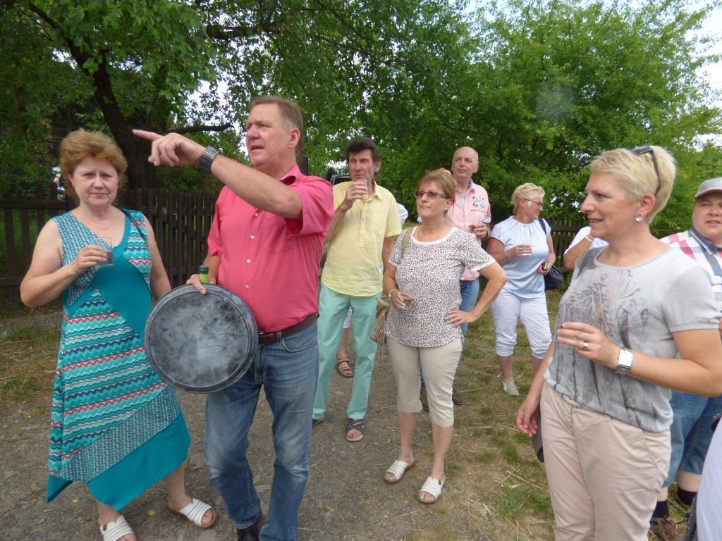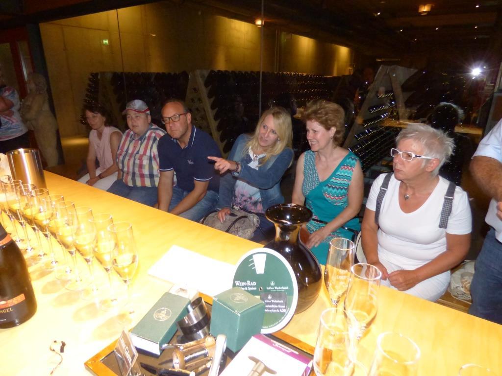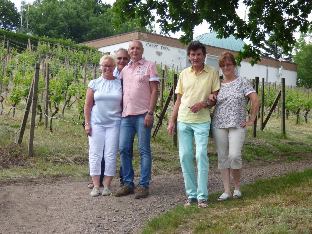 Dort wurden wir vom Hotelinhaber Jens Seidel mit einem Begrüßungstrunk überrascht. Danach folgte eine amüsante Fahrt mit dem Oldtimer-Bus zur Volkssternwarte Adolph Diesterweg. Auf der amüsanten Fahrt an tollen, alten Villen vorbei, erfuhren wir vom Inhaber der OLD-TIMER-TOURS Thomas Seidel einiges Interessantes und Wissenswertes über Radebeul. Mitten auf dem Weinberg angekommen, wartete nicht nur eine tolle Aussicht mit Blick auf die Weinberge, das Elbtal, Radebeul, Dresden, Teile der Sächsischen Schweiz, des Erzgebirges und aufziehende Gewitterwolken auf uns, sondern ebenso Jens Seidel und Sylvia Richter mit einem Glas Wein. Mit Schwung und Stimmung ging es dann per pedes (nicht zu verwechseln mit Mercedes Mercedes :-)) bergab – an der „schönsten Weinsicht“ vorbei – zum Schloß Wackerbarth. Bei der sehr kurzweiligen Führung erfuhren wir einiges über die Herstellung des Sektes, auch die abschließende Verkostung hatte es an Heiterkeit und Geschmack in sich. Mancher fühlte sich wie August der Starke und die Andere wie Gräfin Cosel … :-) http://www.schloss-wackerbarth.de/